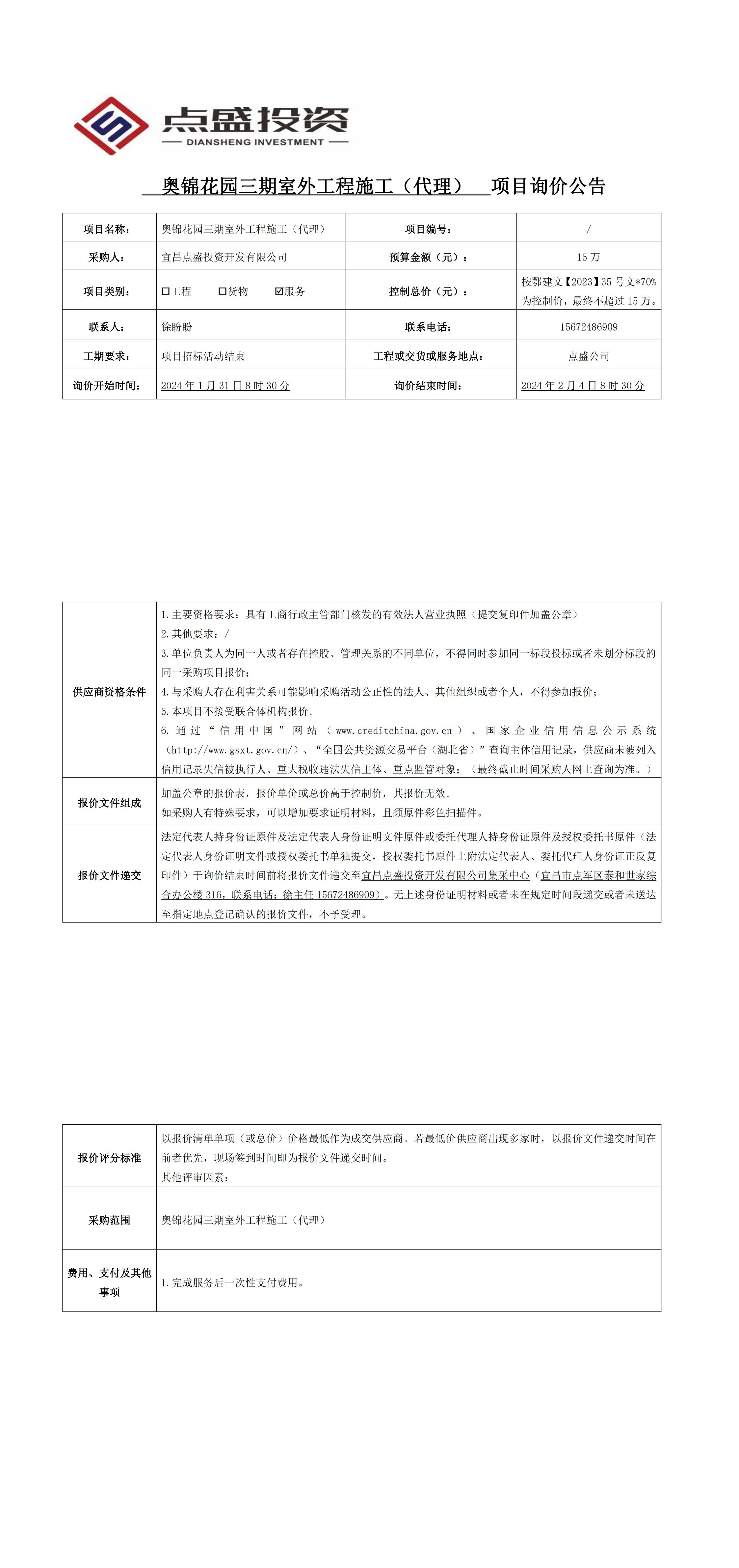 奧錦花園三期室外工程施工(代理)項目詢價公告