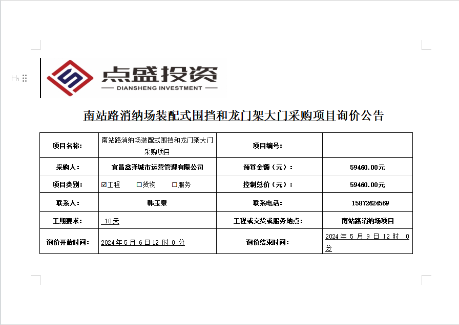 南站路消納場裝配式圍擋和龍門架大門采購項(xiàng)目詢價(jià)公告