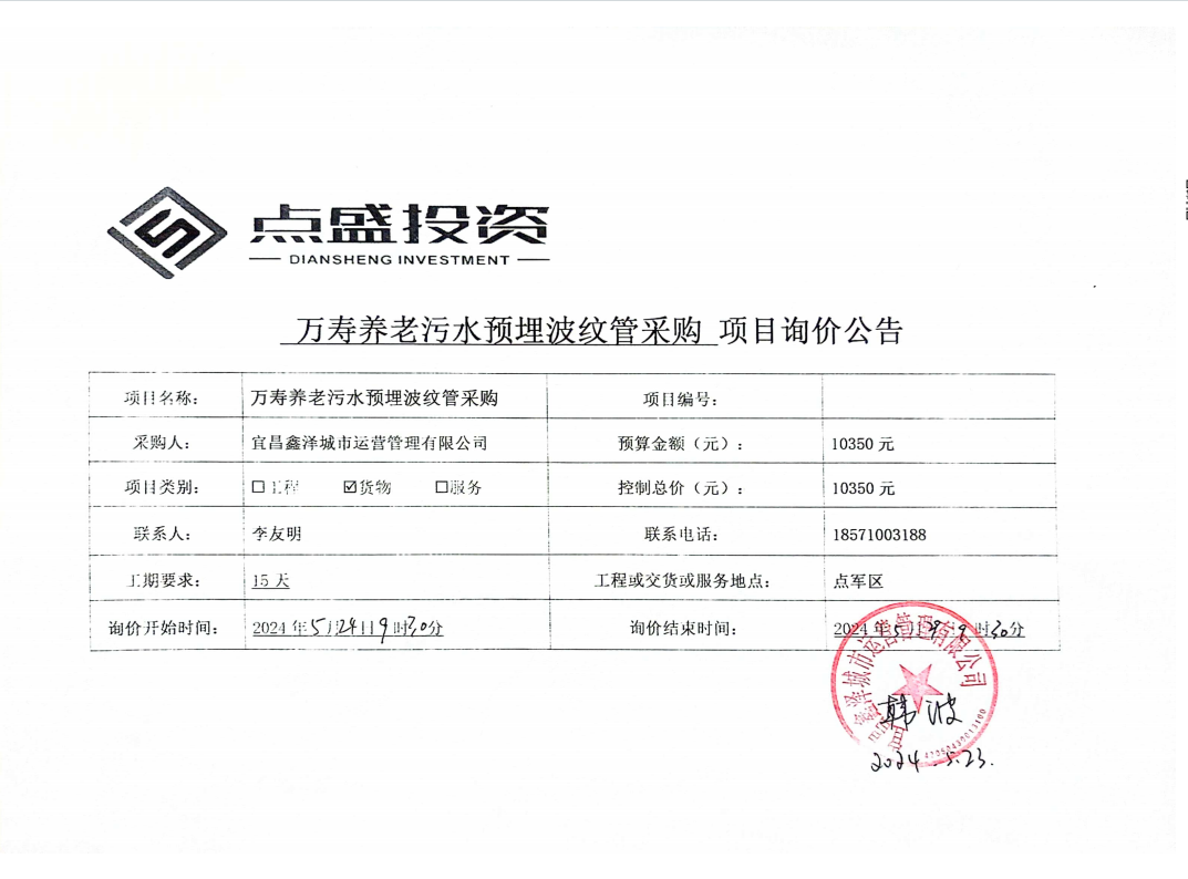 萬壽養(yǎng)老污水預埋波紋管采購詢價公告