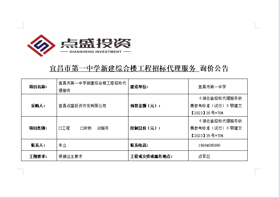 宜昌市第一中學(xué)新建綜合樓工程招標(biāo)代理服務(wù)詢價公告