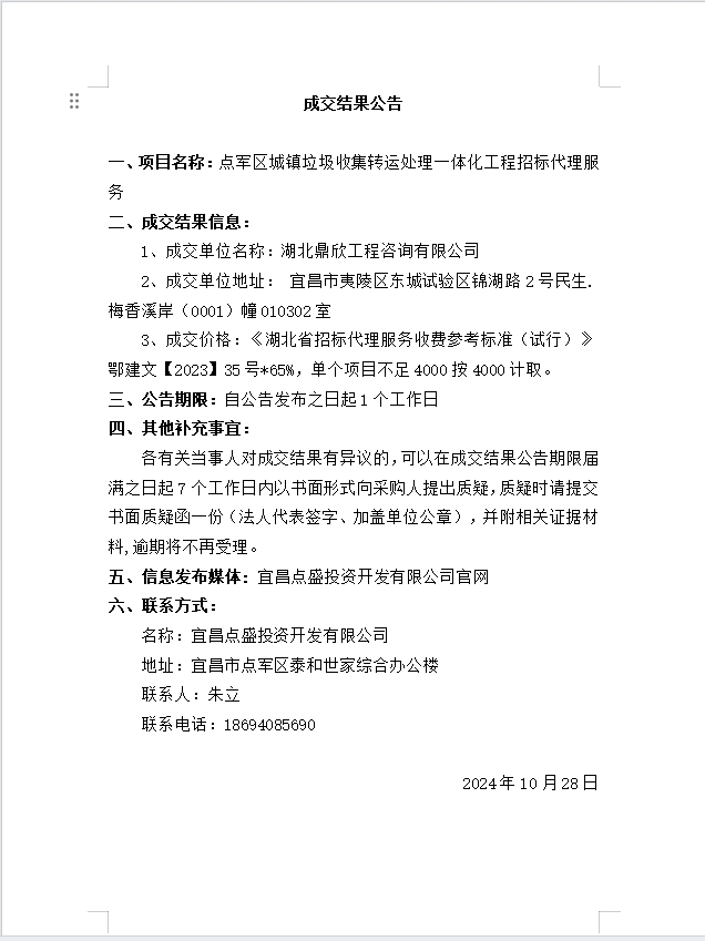 點(diǎn)軍區(qū)城鎮(zhèn)垃圾收集轉(zhuǎn)運(yùn)處理一體化工程 招標(biāo)代理服務(wù)成交公告